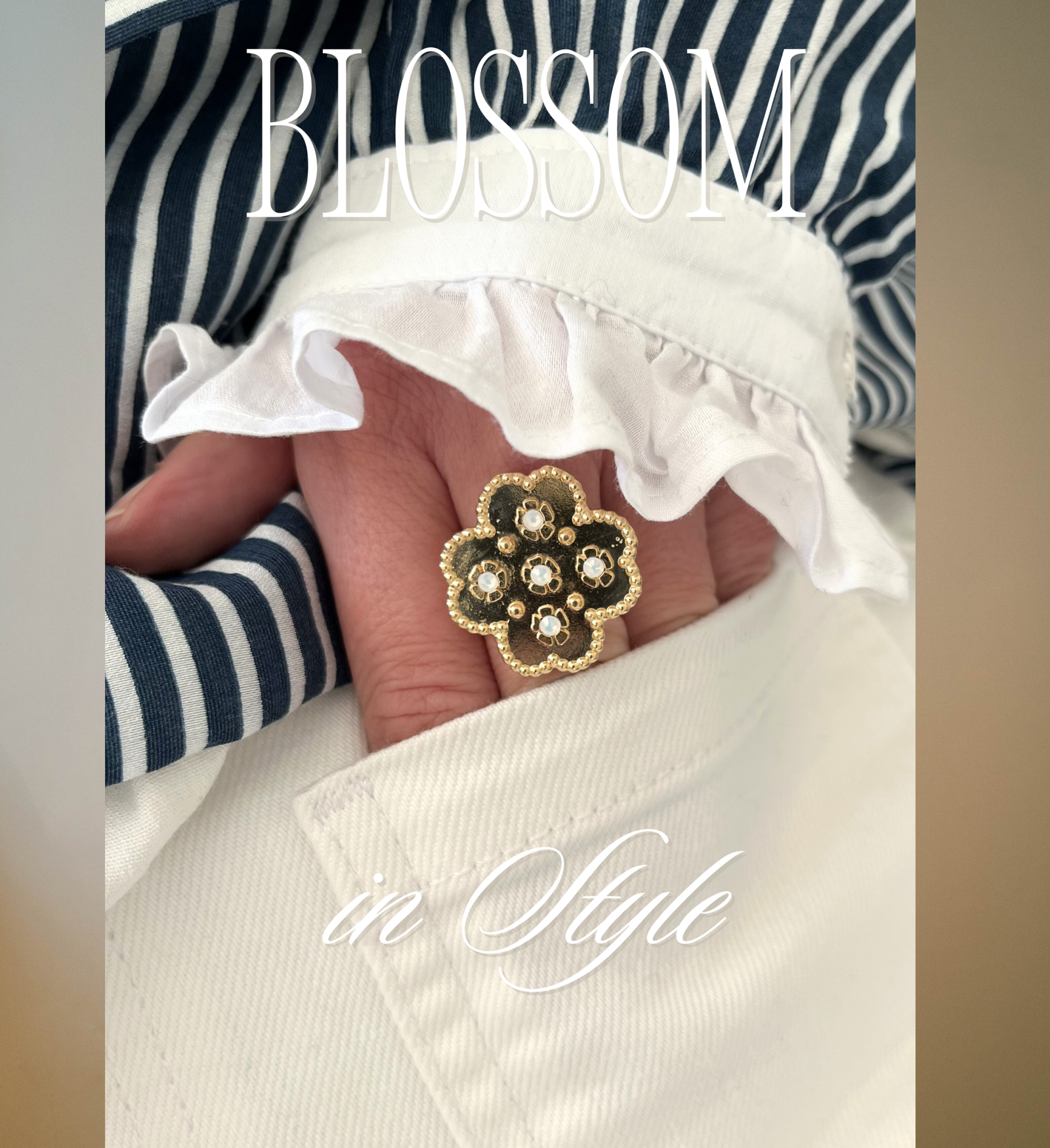 - Design : Une bague florale en forme de trèfle