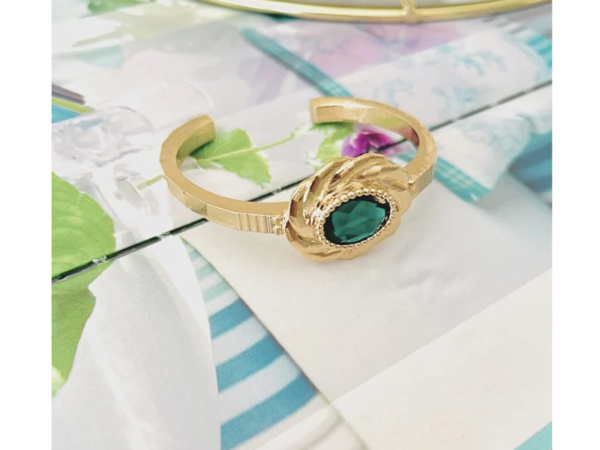 Bracelet jonc doré et sa pierre à facettes en cristal