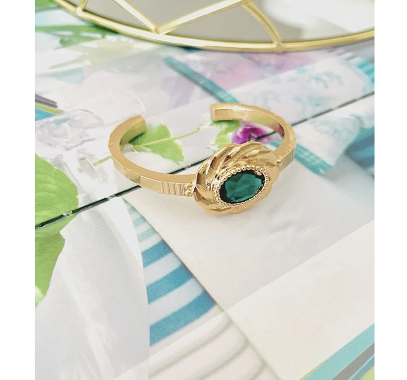 Au centre, un design festonné mis en valeur par une pierre en nacre naturelle ajoutant une touche de couleur et d’éclat.