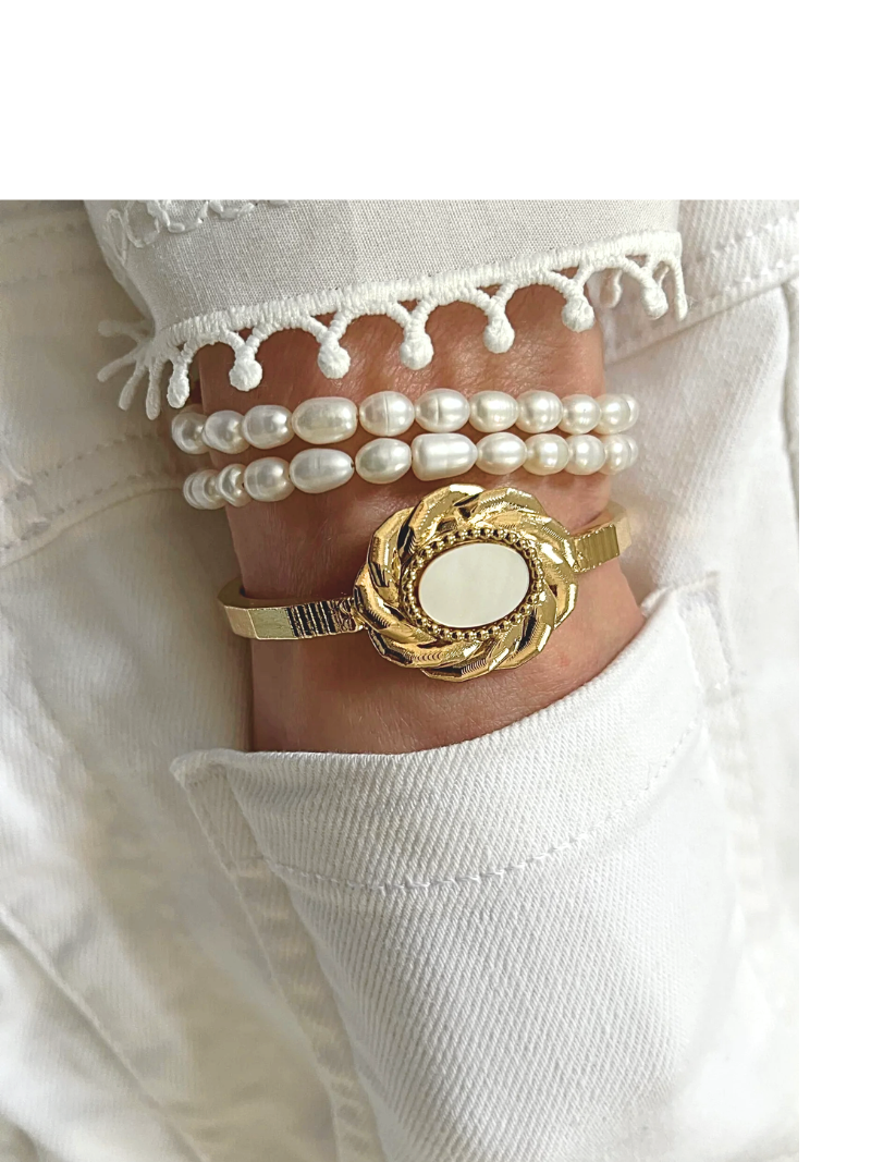 Notre bracelet jonc se décline également sous forme de bague plaqué or perle nacre naturelle > Bague tendance plaqué or