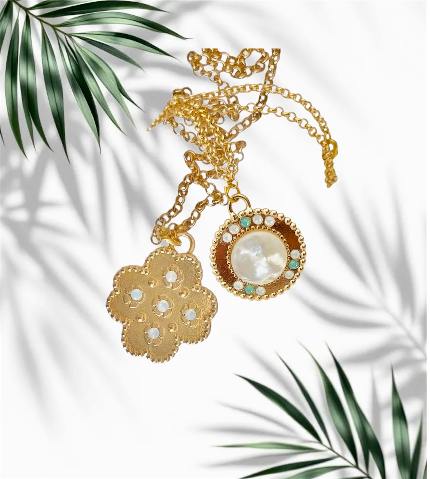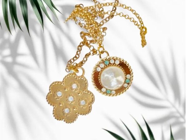 Découvrez notre collier perle nacre et sa perles à facettes Collier pendentif fleur
